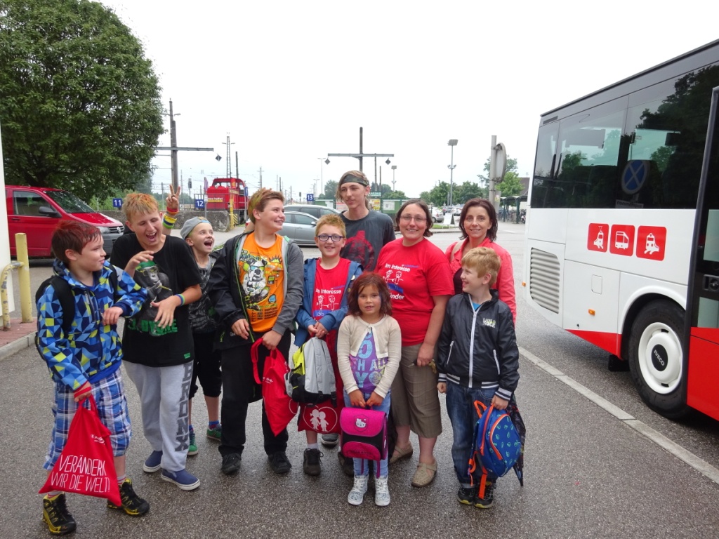 Am vergangenen Samstag war es wieder soweit. In vielen Teilen der Linzer Innenstadt, der Landstraße und am Hauptplatz gab es ganz viele Spielstationen, Kreativworkshops, Hüpfburgen, eine Styling-Meile und selbstverständlich gab es auch wieder eine Kinderrechte-Demo. Die Wimsbacher Kinderfreunde, die Edter und Lambacher Gruppe fuhren gemeinsam mit einem Bus von Lambach nach Wels, um von dort auch die Welser Gruppe mitzunehmen. Weiter ging’s Richtung Linz auf den Martin-Luther-Platz, wo bereits die ersten Stationen warteten. Zum Beispiel konnte man an einer Station ein Gebäude aus Holz- und Kunststoffabfall bauen oder bei der nächsten Station Trommeln aus alten Dosen basteln oder Freundschaftsbänder sammeln oder sich gegenseitig schminken und die Haare färben oder einfach nur Freunde treffen und neue Freunde kennenlernen – dieses „Fest der 1000 Schritte“ ist ein Fest für die ganze Familie und die Kids haben es sichtlich genossen. Leider hat ein Starkregen am Nachmittag zum vorzeitigen Abbruch der Veranstaltung geführt und so ging’s etwas durchnässt mit dem Bus wieder Richtung Heimat.