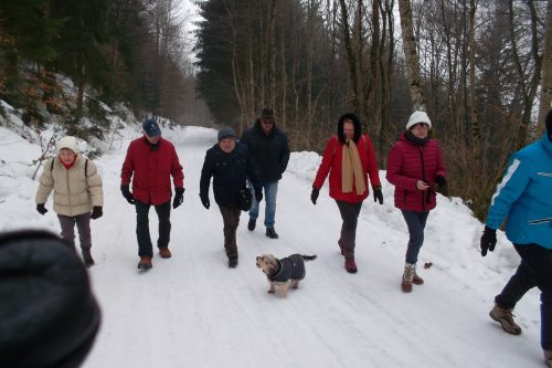 Am Donnerstag, den 9. Februar ‚entführte‘ Reiseleiter Pepi Nöbauer die Wimsbacher Pensionistinnen und Pensionisten ins Salzkammergut nach Traunkirchen-Winkl. Hinauf ging’s auf den Parkplatz, von wo ab die zwölfköpfige Wandergruppe zu Fuß auf der schneebedeckten Forststraße zur Hochsteinalm marschierte.