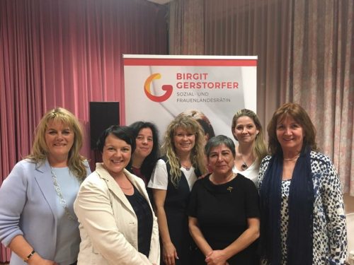 Stadtfrauenvorsitzende Vzbgm.in Silvia Huber (links) mit ihren Stellvertreterinnen Eva Maria Holzleitner (2.v.li) und Petra Wimmer (Mitte) und Bezirksfrauenvorsitzende LAbg. Roswitha Bauer mit ihren Stellvertreterinnen Stadträtin Heidi Strauss aus Marchtrenk (3.v.re) und Ursula Eder, Gemeinderätin aus Bad Wimsbach-Neydharting (rechts) mit Referentin Abg.z.NR Nurten Yilmaz (3.v.li)
