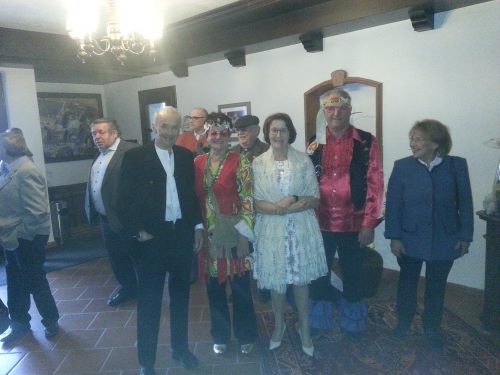 Elfriede zeigt tolles Bein und Heini, souverän wie immer, nahm statt 1970 den Anzug von 1870! Jedoch mit einer Figur wie einst im Mai kann man sich das leisten – Kompliment!