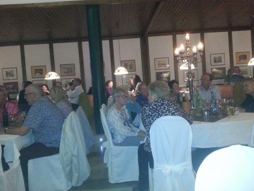 Nach einem Willkommensaperitiv mit Sekt und Campari wurde man mit Grüßen aus der Küche auf die Hauptspeisen des Abends eingestimmt. Suppe, Schnitzel, Kalbsbraten und Zander mit schwarzen Nudeln wurde serviert. Wein, Bier und alles andere, was die Leber so benötig, wurde aufgetischt. Hier wurden keine Kosten und Mühen gescheut, um die Gäste zu verwöhnen.