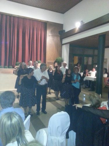 Die Linedancer mit der begeisterten Jubilarin in Aktion…..
