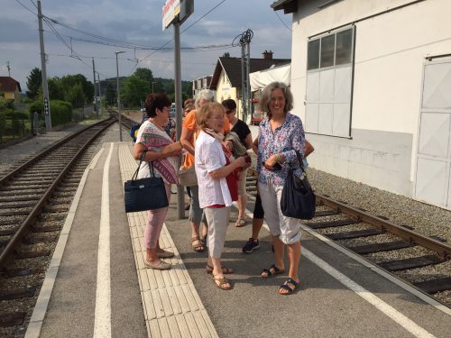 In Steinfeld und in der Mittleren Au kamen noch weitere Damen dazu. Schlußendlich stiegen gegen 10 Uhr am Klosterplatz fünfzehn sehr gut gelaunte Frauen in Gmunden aus dem klimatisierten Zug.