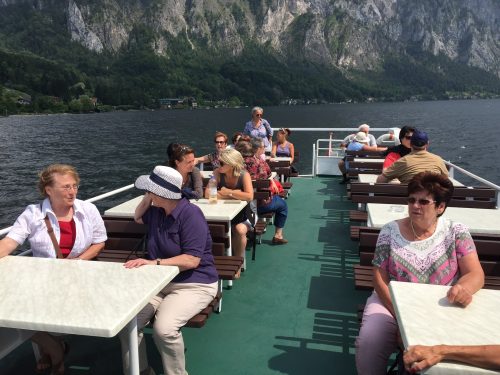 Nach ca. zweistündigem Aufenthalt im schönen Gastgarten genossen wir die Rückfahrt nach Gmunden mit dem Linienschiff „Maria Theresia“ bei sommerlich sonnigem jedoch auch etwas windigem Wetter. Einige Frauen deckten sich am Flohmarkt noch mit Tüchern, Hüten, Schuhen, Taschen usw. ein, andere genossen das Freiluft-Jazzkonzert am Rathausplatz in Gmunden. Um 16.30h traten wir wieder die Heimreise an.