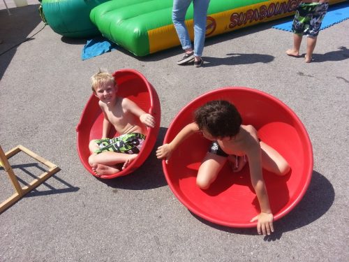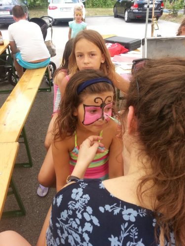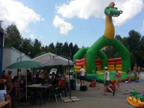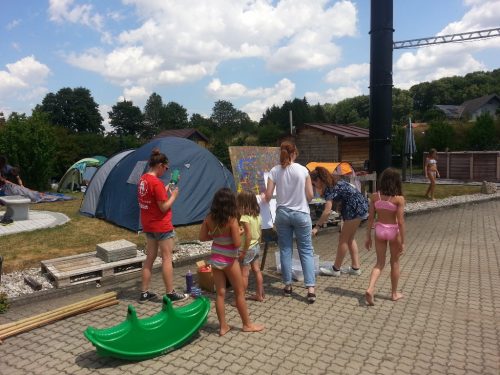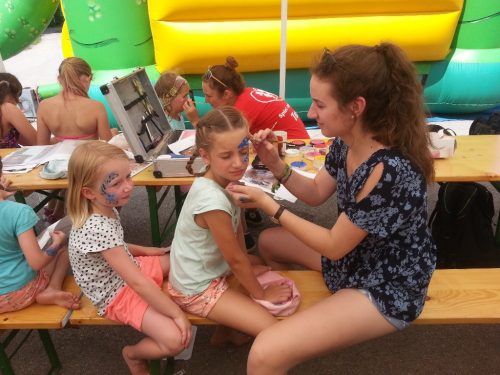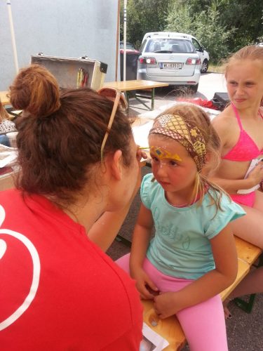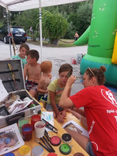 43 Kinder von 6-12 Jahre genießen derzeit das tolle Wetter, das kühle Nass, die Hüpfburg der KINDERFREUNDE, abgefahrene Spielsachen, Kinderschminken usw. Kurz – es ist eine Riesenhetz!