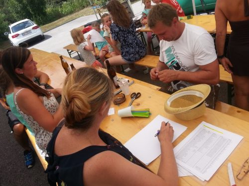 Tombolavorbereitung – alle Lose müssen sorgfältig gerollt werden