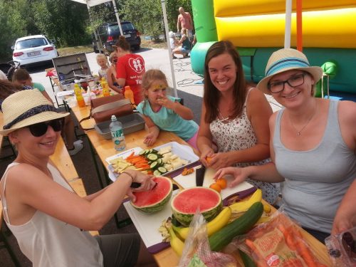 …..oder unsere Damen beim Obstschneiden