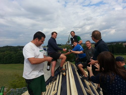 Heute, am Samstag den 15. Juli 2017 war ich kurz vor 15 Uhr mit einer entsprechenden Bierspende wieder auf dem Gelände und ich konnte es kaum glauben – es wird heute noch Dachgleiche gefeiert.
