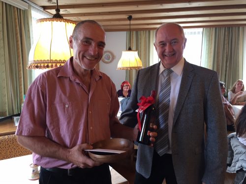 Da auch bekannt ist, dass er an einem neuen Weinkeller bastelt, brachten viele Gäste auch Rotwein als Geschenk mit – ist ja auch mehr als passend für den ‘Oberroten’ unserer Ortsgruppe 😉