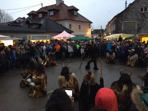 Das Highlight des Wimsbacher Adventmarktes waren auch heuer wieder die ‘Taurus Pass’, die wunderschön schaurigen Perchten aus Altmünster. Mit ihrem neuen Programm und neuen Kostümen präsentierten sie sich mit dem Tod, mit der Hexe und dem Oberteufel mit dem ‘goldenen Horn’. Sie waren wieder toll anzusehen und zogen mit ihren furcherregenden Gestalten das Publikum aus nah und fern in ihren Bann.