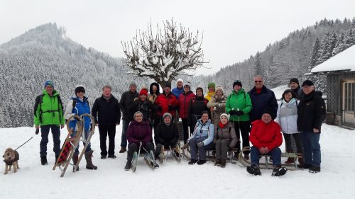 Gut gegessen, den Durst gestillt und so gestärkt freuten sich alle auf die Abfahrt mit der Rodel, die beim Parkplatz für so manchen viel zu schnell sein Ende fand 🙂