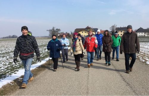 Bei – 9° Grad Celsius und eisigem Wind, der die angezeigte Temperatur gleich noch einmal in den zweistelligen Bereich hinunter katapultierte, startete die wetterfeste Gruppe des Wimsbacher Pensionistenverbandes gut eingepackt ihre geplante Wimsbachrunde.