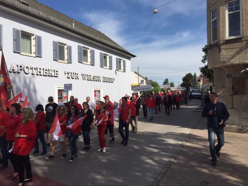 An die 500 Funktionärinnen und Funktionäre, Arbeitnehmerinnen und Arbeitnehmer, Pensionistinnen und Pensionisten, Familien mit Kindern, viele Jugendliche und allen voran die Musikkapelle der Stadt Marchtrenk marschierten bei traumhaft schönem Wetter am 1. Mai in Marchtrenk beim Maiaufmarsch der SPÖ mit.