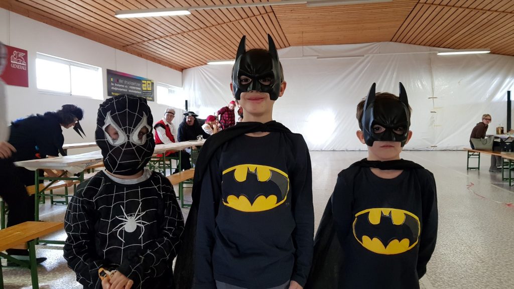 Und sie kamen alle: Indianer und Cowboys, Spiderman und Astronauten, Ritter und Prinzessinnen, Krokodile und Drachen, und, und, und……fast schien es, als ob die Stockschützenhalle zu klein würde…..jedenfalls wurden noch Tische und Bänke aufgestellt, denn die wurden noch gebraucht! Im folgenden einige der besten Schnapschüsse: