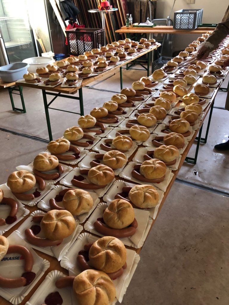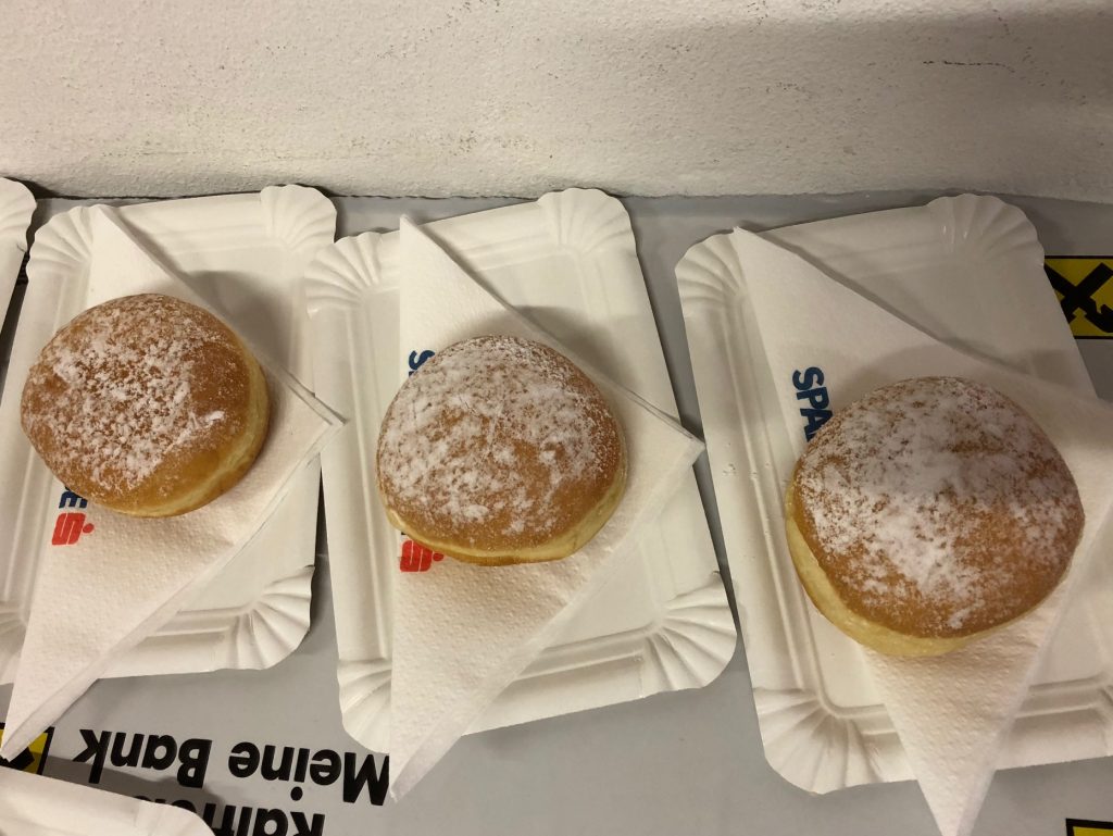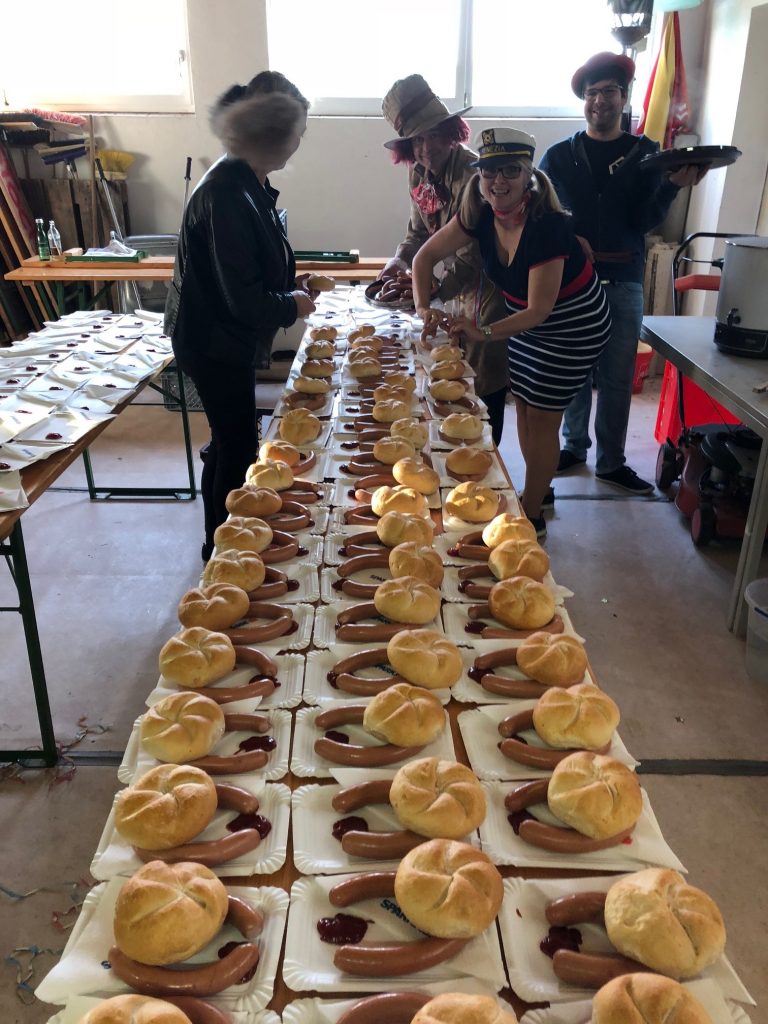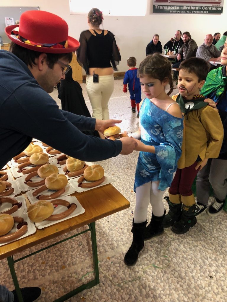 Nach zweistündiger Action freuten sich alle bereits auf die wohlverdiente Würsteljause und mit einer wohlformierten Polonaise holten sich unsere kleinen Gäste die kleine Stärkung selbst ab. Auch unsere Faschingskrapfen fanden reißenden Absatz und waren leider schon vor der Zeit aus…..