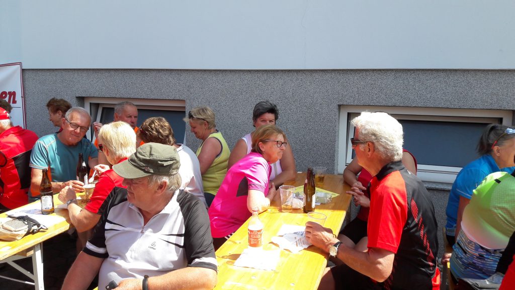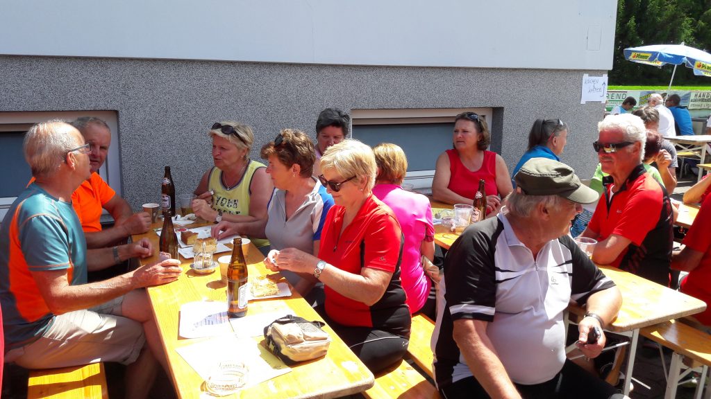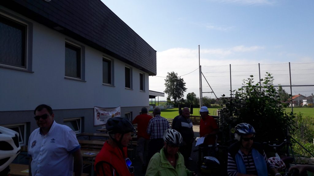Treffpunkt war der Sportplatz der Union Steinhaus, wo sich die sportlichen Teilnehmerinnen und Teilnehmer zur Abfahrt bereit machten.