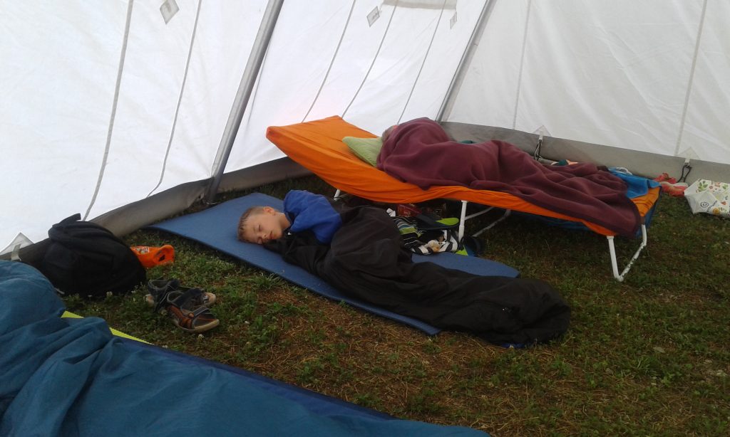 Gleich ging es ans Zelt aufbauen und anschließend wurde das Gelände erkundet. Groß war die Freude über Schaukel und Rutsche, die heuer erstmals angeboten und auch gleich eifrig genutzt wurden.