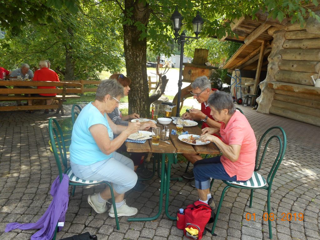 Nachdem kurzer Rast ging es wieder retour zum Gasthaus Beer. Den Abschluss dieses herrlichen Wandertages genoss die Gruppe im wunderschönen Gastgarten bei gutem Essen und Trinken.